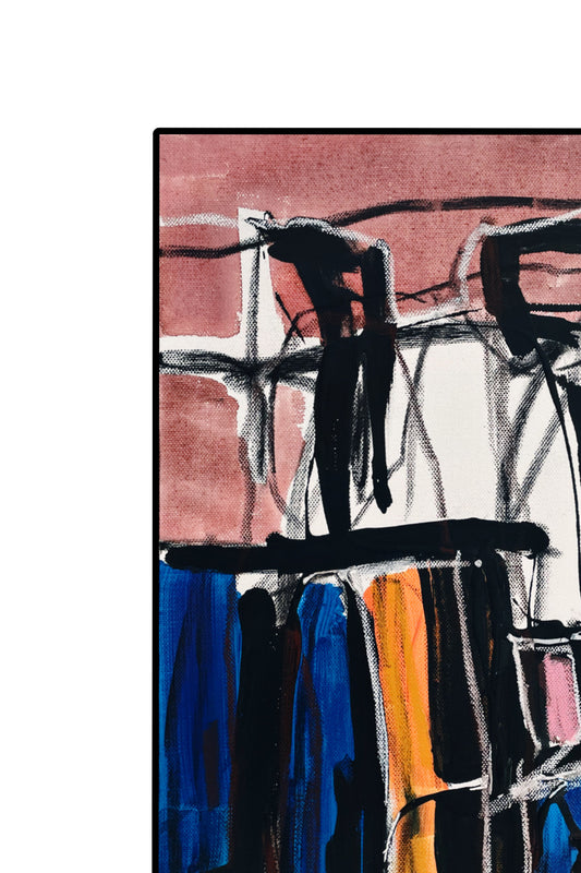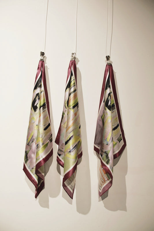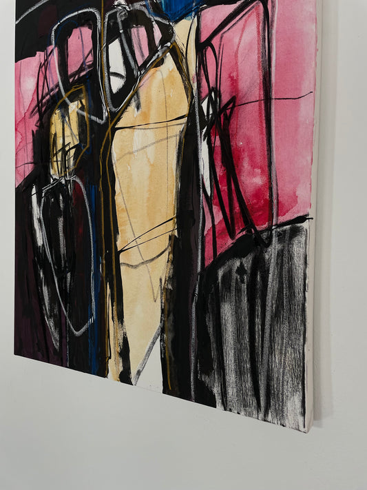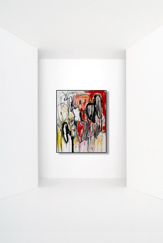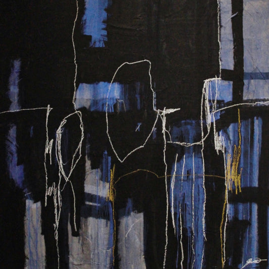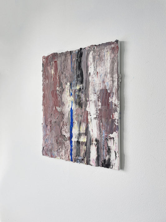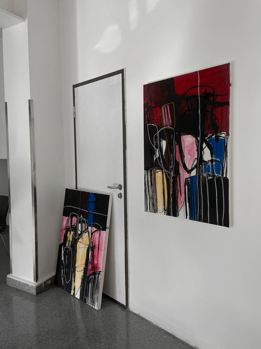 The abstract visual language in my works, is a direct transfer from my heart, a form of reflection through the mediums I work with. However, I’m mainly working with acrylic paint, oil pastels, spraypaint, putty compound for making textures and I work in layers. I’m trying to create tactility by texture and depth through denominations. The substrate is ether a canvas, paper or fabric, but I also work with macro-photography by catching movement and light.