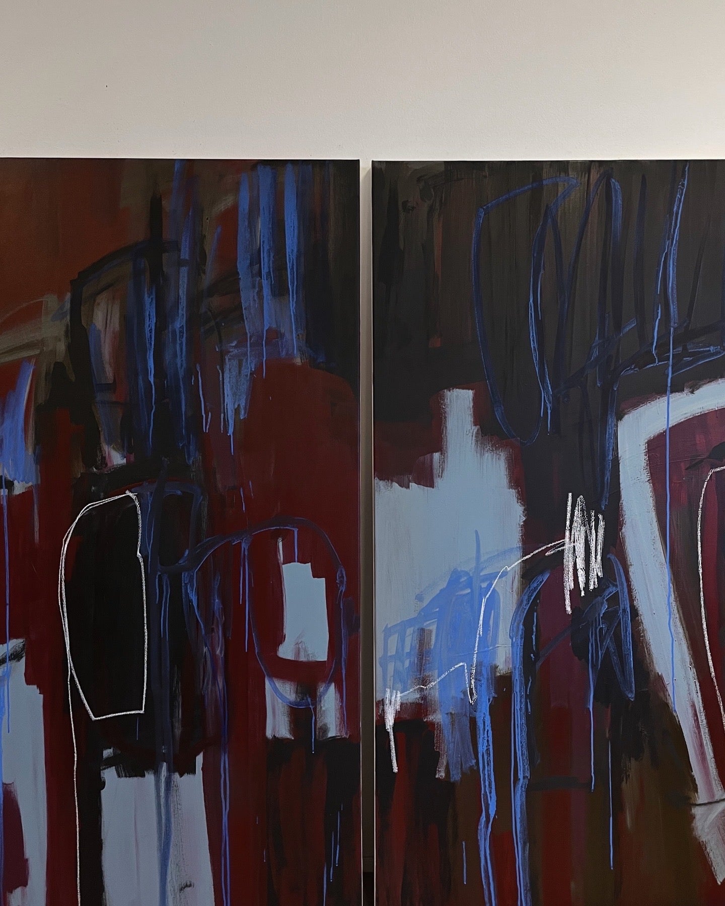 Akryl og pastellkritt på lerret