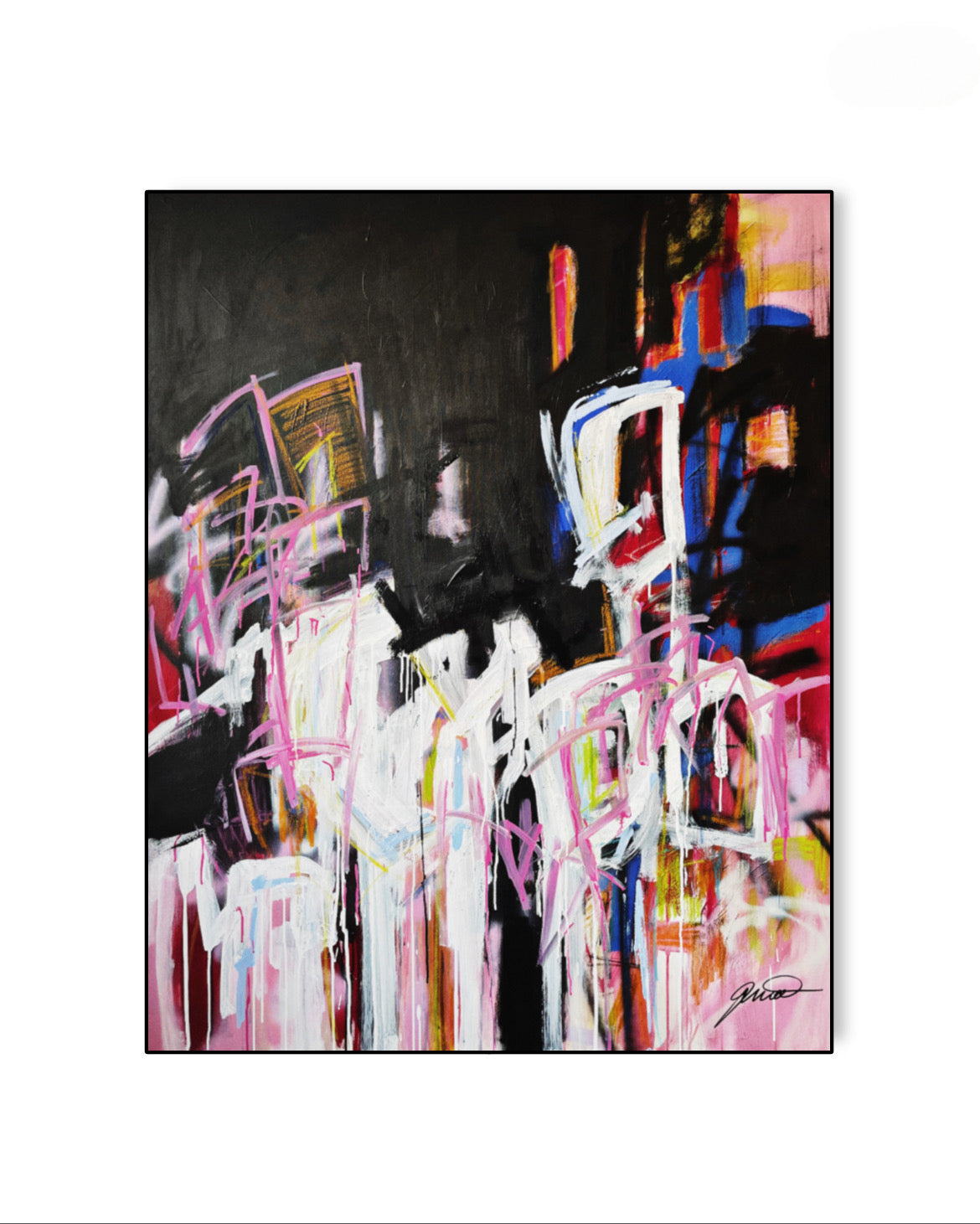 Acrylic, charcoal, oil stick and spraypaint on canvas