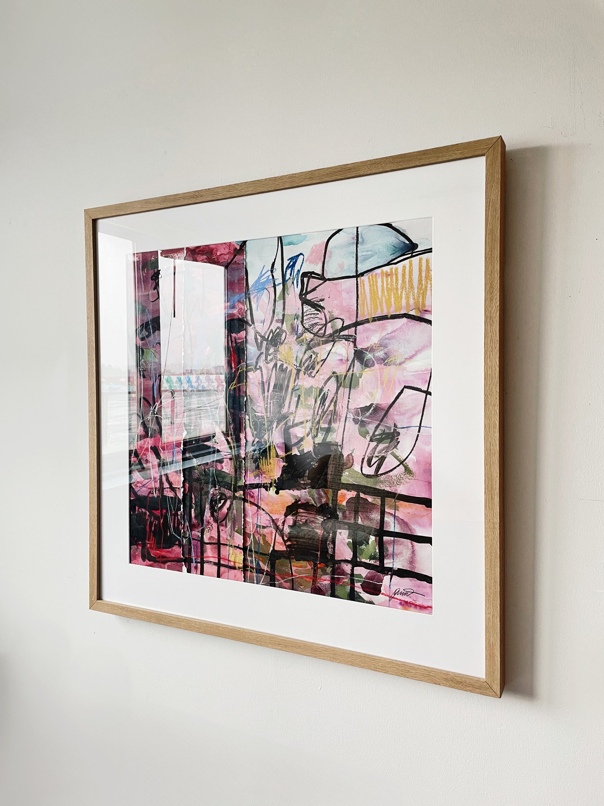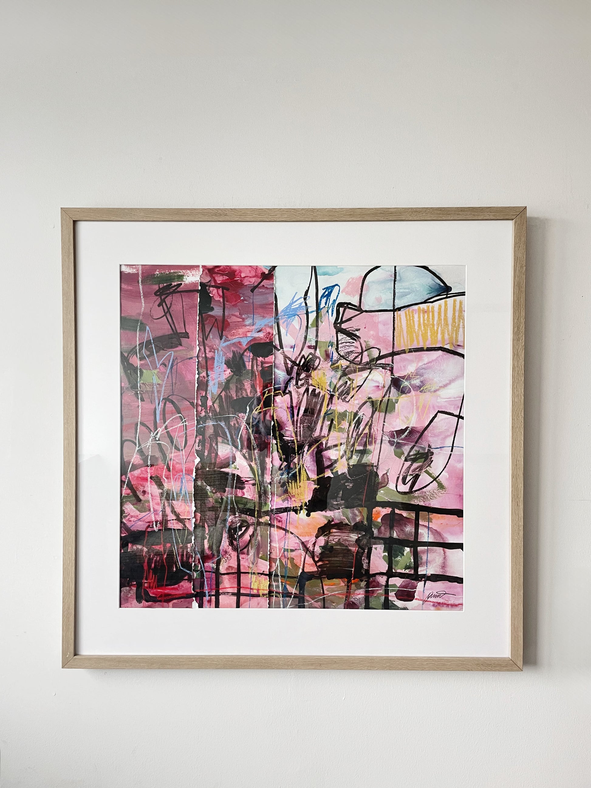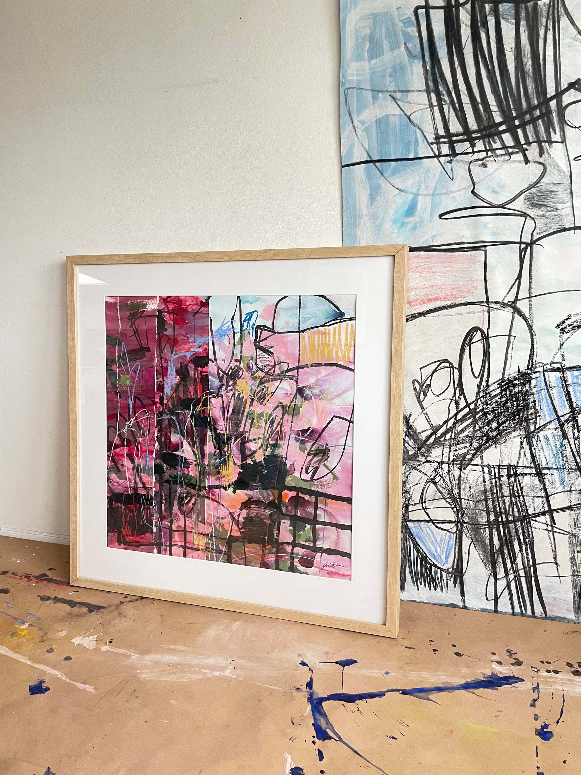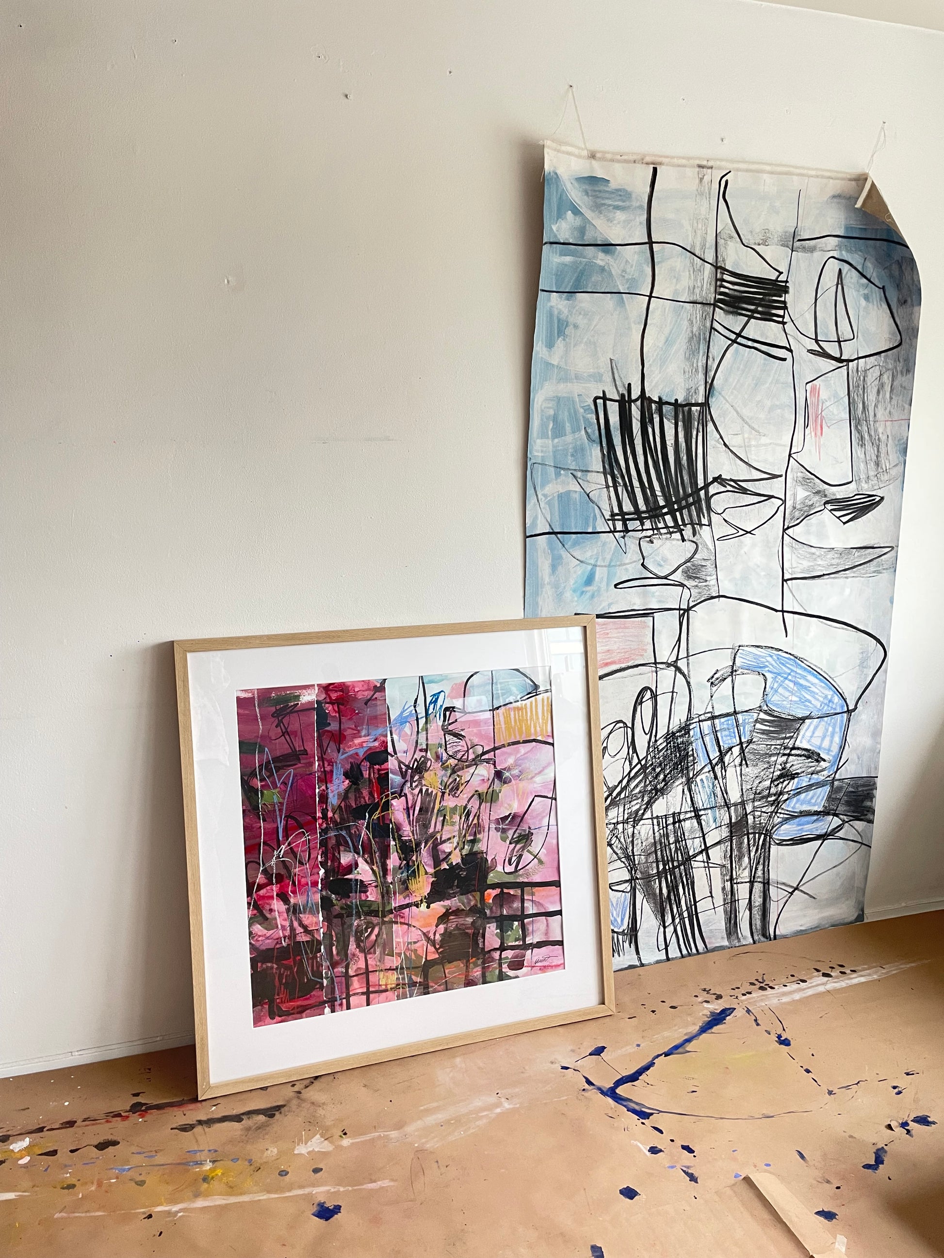 Akryl, pastellkritt, vannmaling og kull på lerret